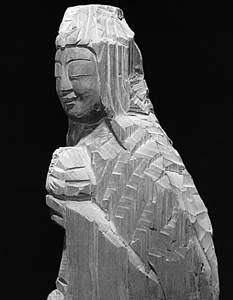 観音菩薩 円空作(荒子観音蔵)円空は、延宝・貞享年間(1673-1688)にかけて荒子観音を数回訪れ、山門の仁王像や千200体を超える木彫仏像を残した。日本全国で現存が確認されている約4千500体の円空仏のうち、実に4分の1以上が荒子観音にあることになる。[参考サイト「円空連合のサイト」・「荒子観音のサイト」]